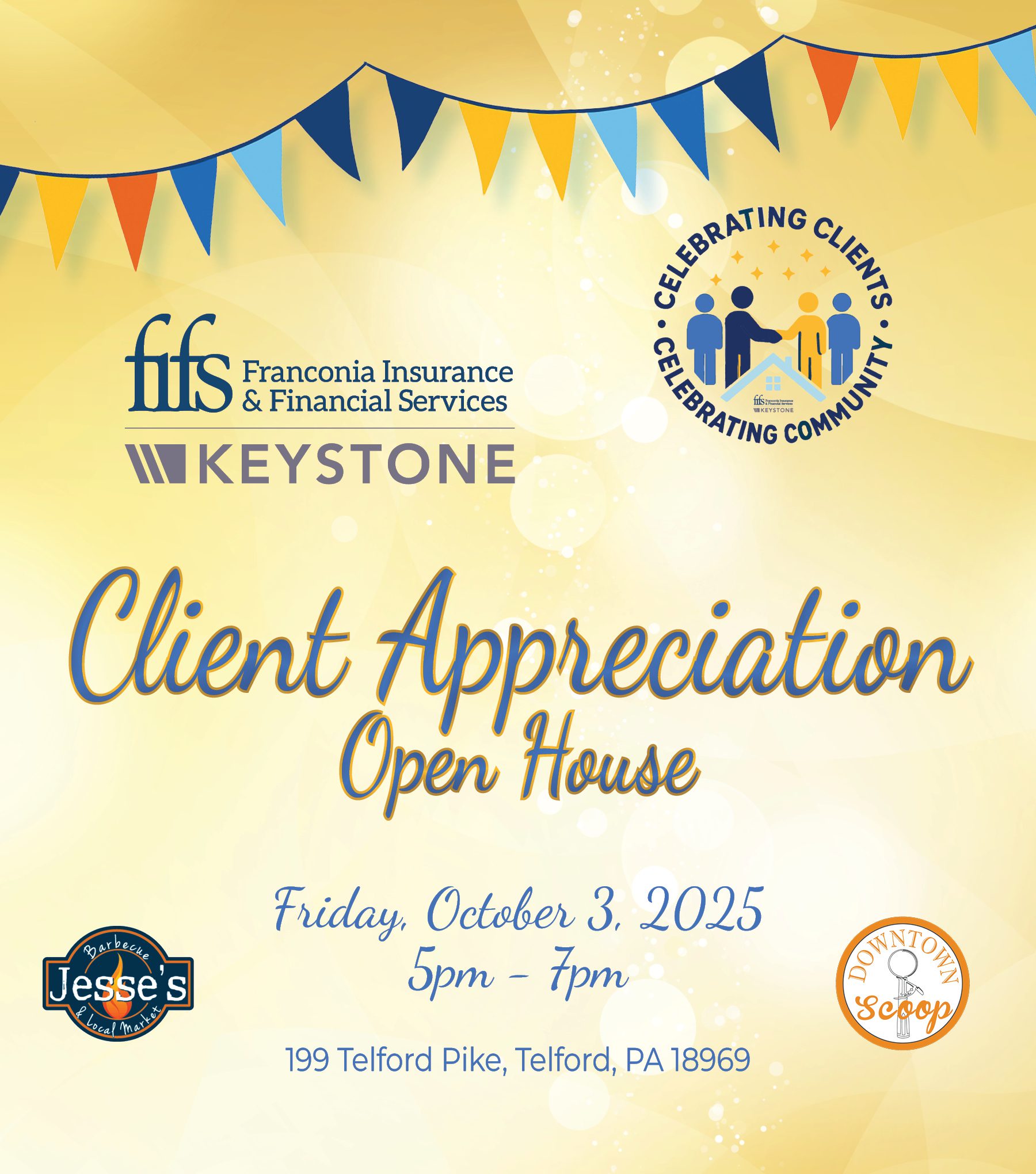 As a way of saying thank you for your trust, your loyalty, and the opportunity to serve you, we are hosting a Client Appreciation Week from September 29 to October 3, 2025. There will be drawings each day for prizes, and the week will culminate with an in-person open house at our Telford office on Friday, October 3, 2025.